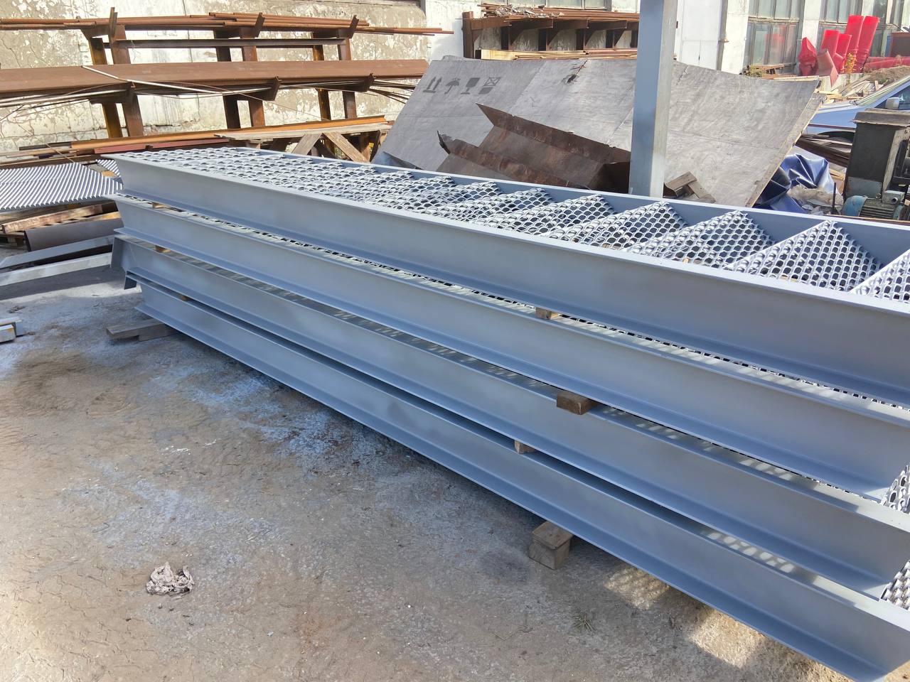 Недавно наша компания завершила производство промышленных стальных лестничных маршей из стали марки Ст3 — конструкций, предназначенных для эксплуатации в условиях повышенной нагрузки и интенсивного движения персонала. Изделия изготовлены по индивидуальным чертежам заказчика и предназначены для установки на объекте промышленного назначения — в цеху, на складе или в техническом помещении.